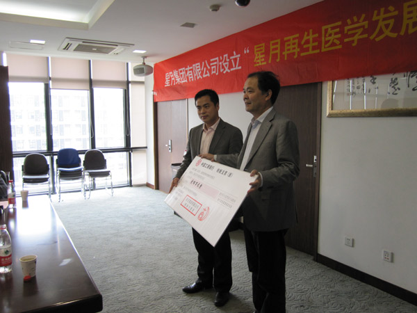 2010年4月29日下午,星月集团有限公司设立“星月再生医学发展基金”的捐赠仪式在银河线路检测中心医学部正式举行。