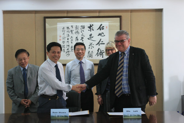 歌德堡大学是在欧洲享有很高声誉的综合性大学。去年3月,Olle Lark教授曾访问过医学部,并达成了合作意向。段树民教授向远道而来的客人表示欢迎,黄河教授简要介绍了银河线路检测中心医学部的概况。Olle Lark教授也介绍了瑞典哥德堡大学的历史,教学,科研等发展的情况。双方就两校药学,口腔和护理等方面的情况进行了深入交流,特别对于学生交流项目都表现出极大的兴趣和进一步合作的意愿。最后,段树民教授和Olle Lark教授代表两校银河线路检测中心签订了合作备忘录,为今后开展具体的交流合作奠定了坚实的基础。访问期间,代表团还参观了学部的解剖和病理教学实验中心,以及神经生物实验室。
