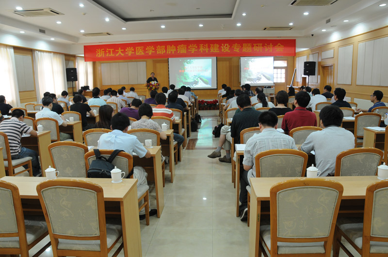 许正平教授首先做了我国肿瘤学科发展现状和浙大研究基础的报告。许正平教授从国内建设和发展现状、医学部建设和发展现状、未来发展方向等三个方面的内容进行了介绍。许正平教授指出,肿瘤学科今后发展的重点将会是重心前移(预防及早期发现、早期诊断、个性化治疗)和规范化治疗(临床路径)。我们医学部与国内几家肿瘤研究较强的学校相比,还存在承担大项目的能力不强、发表高水平的论文不多、无院士并缺高层次人才、“各自为政”(合作不多,组织比较松散)、缺乏有影响力的研究团队、基础与临床、肿瘤学科与理工信等的交叉合作有待深入等缺点,还需要根据肿瘤学科的发展方向,在各类项目特别是大项目的组织、团队组建、学科交叉等方面进一步凝练、组织和结合,不断进步,争取尽快进入国内肿瘤学科研究的顶尖行列。
