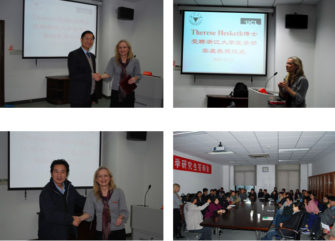 英国UCL大学(University College London)Therese Hesketh博士受聘银河线路检测中心医学部客座教授仪式于2010年11月22日下午13:00在银河线路检测中心社会医学与全科医学研究所会议室举行,医学部公共卫生系主任朱善宽教授主持仪式。