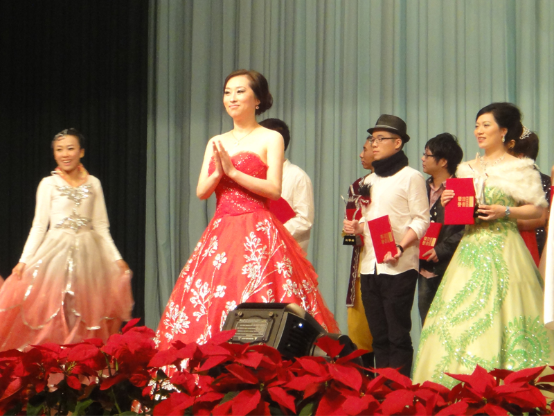 来自我们医学部的李智巧老师,一袭红裙,用她高亢明亮的歌声带领我们走在《阳光路上》,让我们阅尽了共和国60年发展壮丽辉煌。李老师凭借她精湛的美声唱法,美妙的歌声,端庄的台风,博得了观众和评委的满堂喝彩,摘得桂冠并成为最佳人气奖之一。