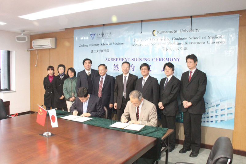 早在2008年10月,熊本大学医学药学研究部副部长竹屋元裕教授一行四人就曾访问医学部。2009年3月,朱军副校长在紫金港校区会见了日本熊本大学校长谷口功教授。今年4月,学校研究生院领导、医学部副书记张小玲等带领获泰尔茂奖学金的学生访问了熊本大学。经过多次互访,两校尤其是两校医学部已有了较深入的了解,此次熊本大学医学部代表团来访,主要是来与医学部签订正式合作协议,包括教学和科研领域的学术交流,人员互访等内容。