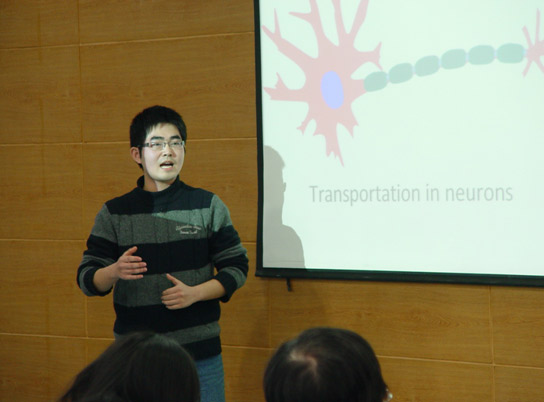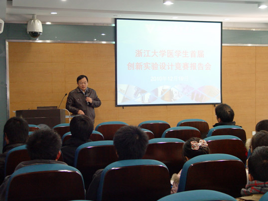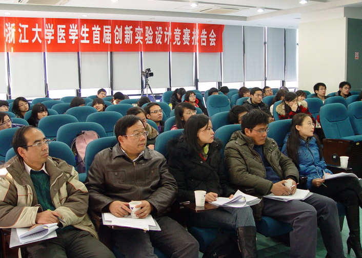 竞赛组委会于2010年12月19日下午13:15在医学部综合楼205报告厅举行了竞赛报告会。申报参赛的12个团队先后进行了创新性实验设计的报告和答辩。基础医学系聘请了5位专家组成创新实验设计竞赛评审委员会,专家们对参赛团队提交的创新性实验设计材料及团队的报告和答辩情况进行的评审,并根据竞赛评审程序分别评选出了竞赛一等奖1个、二等奖2个和三等奖3个。
