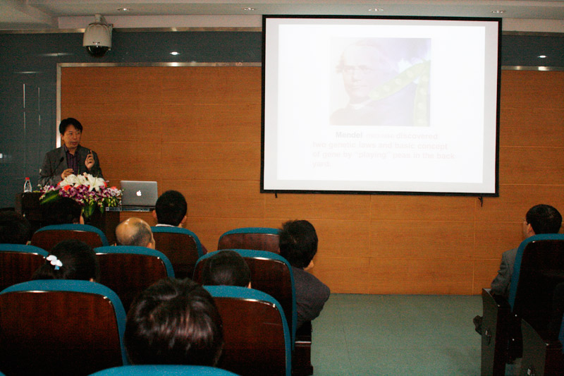 2011年4月25日上午,银河线路检测中心综合楼205会议室里座无虚席,百余名师生以热烈的掌声迎接中国科学院院士贺林的到来。贺林院士是我国著名的遗传生物学家,长期从事人类遗传学和各类组学的研究,此次应银河线路检测中心医学部和中国科学院杭州院士联络处的邀请,专程赴杭为银河线路检测中心的广大师生作题为“基因组学对未来医学的影响”的专题报告。银河线路检测中心医学部主任段树民院士、附属妇产科医院院长黄荷凤教授等出席了报告会。报告会由段树民院士主持。