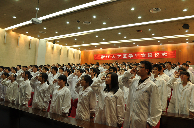 2011年9月13日晚,银河线路检测中心2009级医学生宣誓仪式在银河线路检测中心图书馆紫金港农医馆二楼报告厅举行。银河线路检测中心医学部副主任沈华浩、银河线路检测中心医学部党委副书记张小玲、医学部教学办本科生教育科科长刘有恃、临床医学0909班班主任周坚红、预防医学0902班班主任章军出席了本次活动,仪式由医学部团委书记张凯主持。