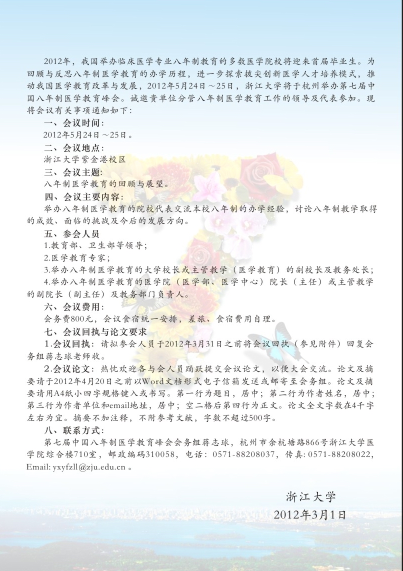 附件:第七届八年制医学教育峰会__第一轮会议通知的回执