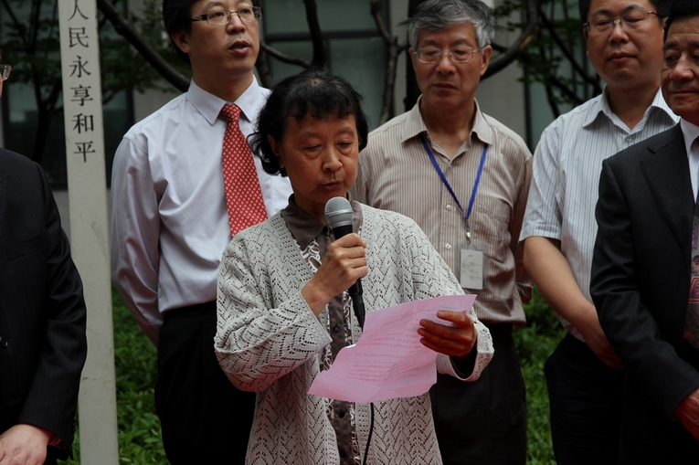 遗体捐赠者徐陬的女儿代表捐赠者家属发言,她讲述了当时她父亲的生平以及决定把遗体捐献给医学部时的一些情况,并表示看到无语良师碑的建成感到非常欣慰,终于使像他们这样的家属有了寄托哀思的场所,相信这对促进更多志愿者捐献遗体也将发挥积极作用。