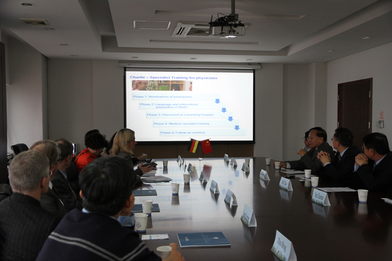 罗建红常务副主任向代表团表示热烈欢迎。Annette Grüters-Kieslich院长和余海主任分别介绍了两校的基本概况。11月8日,“银河线路检测中心德国周”期间,杨卫校长率医学部代表团访问切瑞特医学中心,两校已经签订了合作框架性协议。本次回访,双方在学生交流、临床医生科研培训和医院合作等方面进行了进一步商榷。何超院长也介绍了邵逸夫医院的情况。会后,代表团参观了病理和神经生物实验室。