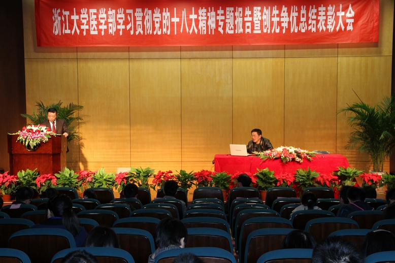为深入贯彻党的十八大精神,切实把医学部广大党员干部的思想和行动统一到十八大精神上来,12月5日下午,医学部在科研辅楼报告厅举行了学习贯彻党的十八大精神专题报告会。会议邀请了浙江省委党校副校长郑仓元教授作《认真学习和深刻领会党的十八大精神》专题报告。医学部党委书记黄河、学部副主任许正平、副书记张小玲、吴弘萍以及医学部教职工、学生党员代表参加了会议,会议由黄河书记主持。