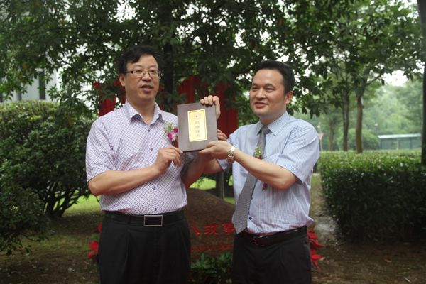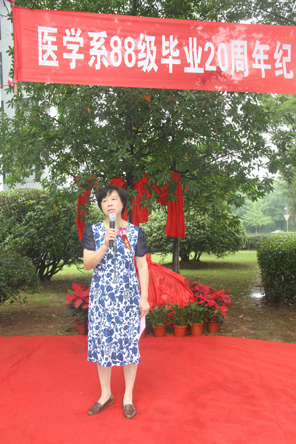 李伟代表88级校友,抒发了对母校的深深思念,对老师的感恩之情和对同学的深深眷念。随后,各位领导和校友代表共同为纪念树揭幕,吴弘萍向88级校友颁发捐赠证书。