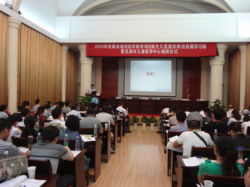 9月24日上午,在大礼堂隆重举行了芜湖市儿童医学中心揭牌仪式。仪式结束后,与会专家、同仁参加了由附属儿童医院承办的安徽省继教项目——新生儿危重症救治进展学习班。