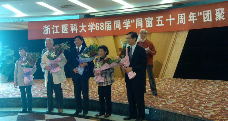 “书声歌声扬,‘田家’学门深……浪涛五十载,白衣各千秋”,这是会上朗诵的由戴迪厅长亲自创作的同学会聚首辞——《人间重晚情》,校友们共同追忆起那段笑谈两无猜的风华年代。1963年,同学们从全国各地进入原浙江医科大学,开始了五年的学医生涯。他们共同的学习、生活、劳动,亲密如兄弟姐妹。1968年,他们又满怀热情理想,奔向基层磨练。满腔豪情奔八方,今朝相聚白头霜。风风雨雨随烟去,好得面迎红夕阳。会上,校友们还一起同庆七十古来稀生日,并进行了自编自演的文艺演出,享受轻松、温馨、浪漫的欢聚时光。