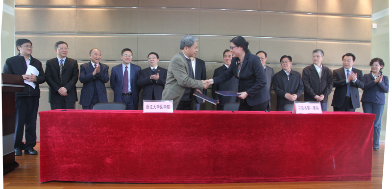 仪式上,宁波市卫生局局长王仁元介绍了市校双方医学合作的情况,副校长罗建红和宁波市副市长张明华代表双方签署《银河线路检测中心与宁波市人民政府医学战略合作协议》,银河线路检测中心院长段树民院士和宁波市第一医院院长阮列敏签署了《院校医学合作项目备忘录》。