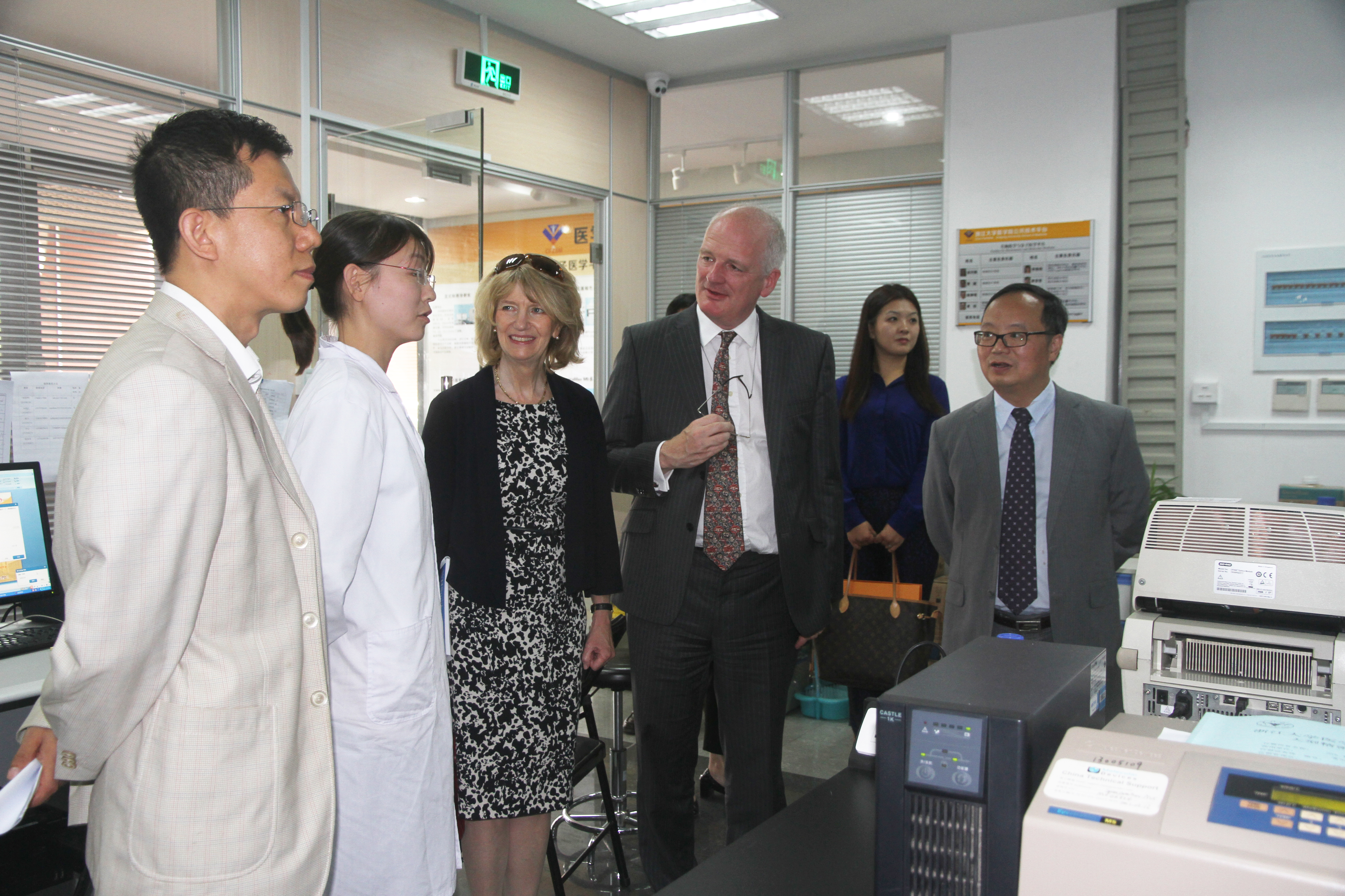 10月8日下午,英国布鲁内尔大学(Brunel University)校长Julia Buckingham、 常务副教务长Andrew George、工学院副院长Hua Zhao和国际战略经理Leina Shi女士一行四人在我校常务副校长宋永华的陪同下访问了银河线路检测中心。我院副院长李晓明、基础医学系副主任王青青接待了来宾。代表团参观了银河线路检测中心的科研公共平台,神经科学研究所和免疫研究所,并与相关教授进行了交流。