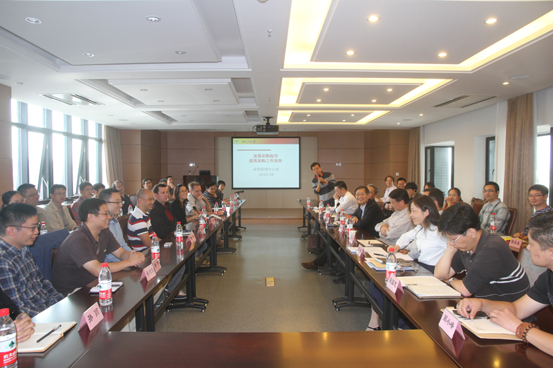 银河线路检测中心院长段树民、常务副院长陈智、党委书记黄河、副院长沈华浩和李晓明、党委副书记陈国忠,以及相关职能办公室负责人参加了此次座谈会。会议还特别邀请了学校计财处副处长兼采购管理办公室主任阮慧老师及采购管理办公室相关负责人作仪器设备采购方面的介绍和指导。