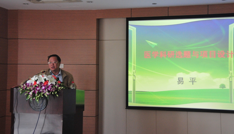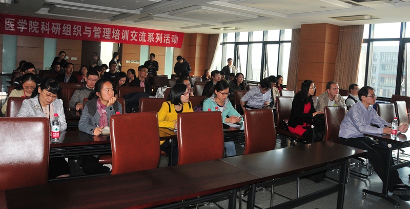 来自基础医学系、公共卫生系、附属一院、附属二院、附属邵逸夫医院和附属妇产科医院的部分老师、临床医生、管理人员和研究生约60人参加了本次报告会。科研办公室主任易平首先介绍了活动的宗旨、目的、意义和具体安排,并为新引进人才和广大师生做了题为“医学科研选题与项目设计”的报告。易平从科研的选题、项目设计和项目申报等三个方面深入浅出地为大家介绍了生物医学科研的选题,科研项目设计的主要内容和基本要点,以及国家、省部级等科研项目的资助范围、主要特点、项目类型、申报途径和申报流程。首场报告会进行了一个半小时,内容详实,实例丰富,语言幽默,使与会的广大师生对生物医学科研的选题与项目设计的相关要求等有了一个全面的、系统的和深层次的理解与认识。