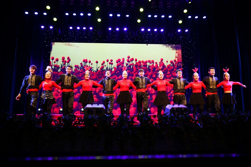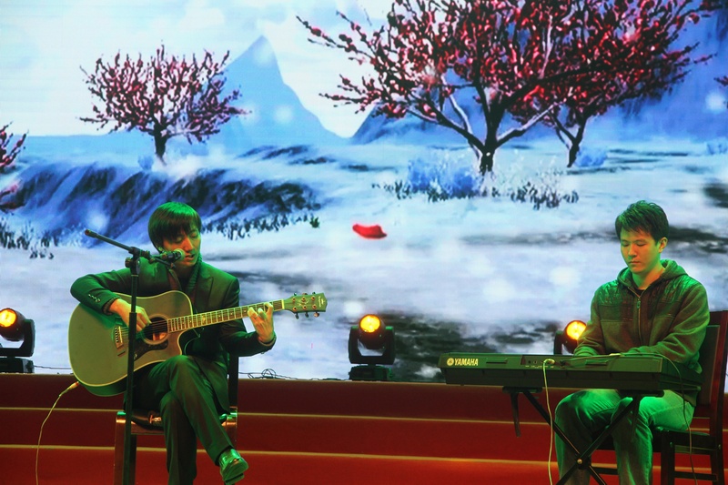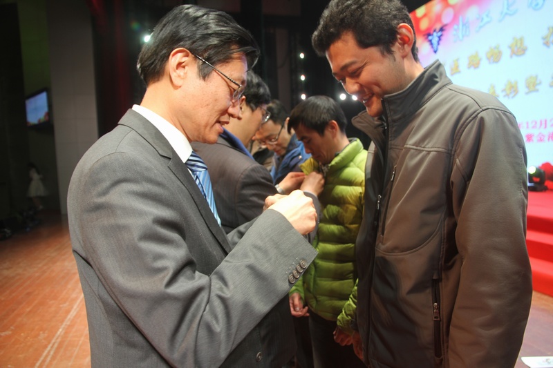 表彰热潮过后,迎新晚会的精彩节目让现场氛围持续高涨,特别是来自党委书记黄河和校艺术中心老师李智巧的合唱歌曲,以及基础医学系郭国骥教授的乐曲弹唱,让现场观众忍不住为玩转手术台舞台、引领科技前沿的多才教授们喝一声好。紧接着,银河线路检测中心2014年引进人才纷纷亮相,进行“百年浙医”徽章佩戴仪式,并抽取了32位欢乐奖,将迎新晚会现场氛围推向高潮。12级本科生、公共卫生系民族生和留学生各具特色的舞蹈,转化医学研究院、学院杏林艺术团和学院十佳歌手弹唱俱佳的乐曲表演给现场观众带来一场难忘的视听盛宴。不得不提的是来自银河线路检测中心离退休教职工的《护士之歌》,以六旬的平均年龄向我们证明健康不老、医路不散。