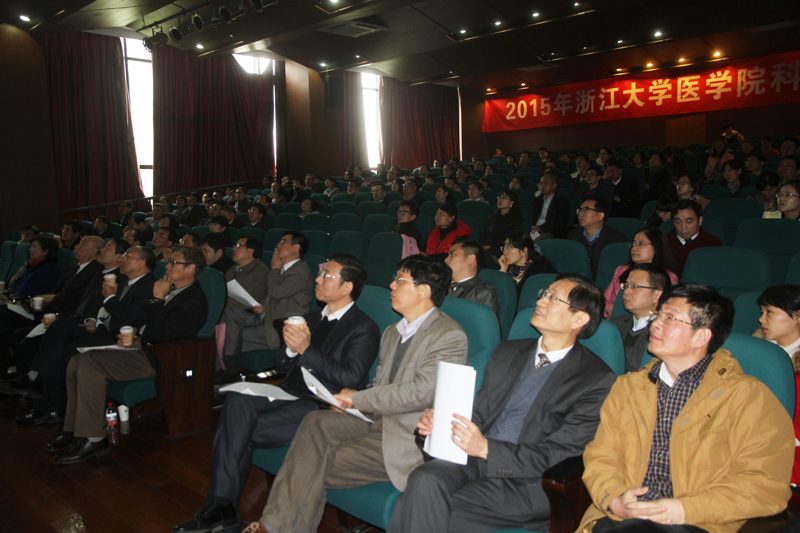 随后,郑树森、王凯、俞云松、吕卫国、舒强、谢志坚、徐志豪、柯越海、吴泓萍、许正平等教授分别代表浙一、浙二、邵院、妇院、儿院、口腔、浙四、基础、公卫和转化院等单位介绍了2014年科研工作的情况及亮点。