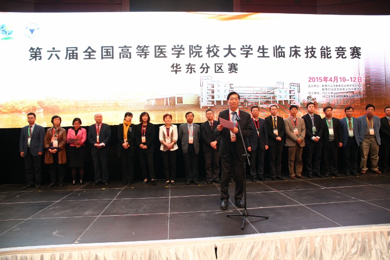 2015年4月10下午,由教育部医学教育临床教学研究中心主办,银河线路检测中心承办的第六届全国高等银河线路检测中心校大学生临床技能竞赛华东分区赛开幕式在银河线路检测中心紫金港校区隆重举行。开幕式由银河线路检测中心常务副院长陈智主持。竞赛裁判长王仲,竞赛副裁判长杨棉华,教育部医学教育临床教学研究中心督导专家迟宝荣、周庆环、张斯琴,银河线路检测中心副校长罗建红,银河线路检测中心党委书记黄河,中国工程院院士、银河线路检测中心附属第一医院院长郑树森等20余名嘉宾出席了开幕式。来自华东地区28所参赛院校的领队、选手等参加了仪式。