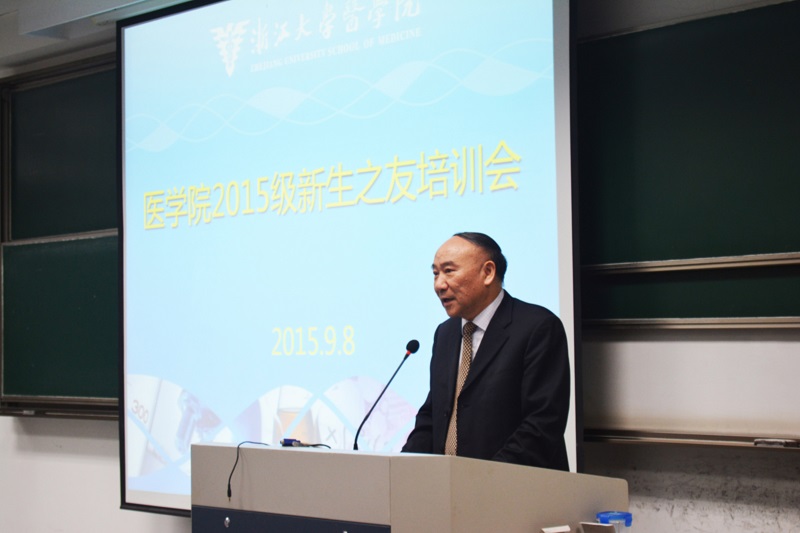 中国工程院院士、附属第一医院院长郑树森代表2015级新生之友发表了讲话。从2011年学校推出新生之友制度以来,郑院士就一直担任临床医学八年制医学生的新生之友,对工作非常支持。在学校刚刚举行的2015级新生之友启动仪式上,郑院士作为代表发言。郑院士向大家分享了他作为新生之友的经验,更深入分析了新生之友工作的价值和意义。其中,“今天,他们是你带的医学生,明天他们就是你的研究生、博士生。”一番话,更是让在场的新生之友激动不已。此外,郑院士还以“学霸寝室”为例,为大家展示新生之友工作的丰硕成果。作为附属一院院长,郑院士一直很重视医院的新生之友工作,无论是在新生之友报名选聘、激励制度,集体活动组织中都给予了高度重视和大力支持。