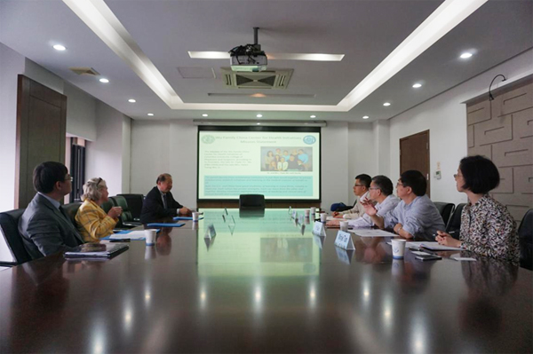罗建红热情地欢迎了代表团的来访。Stanley Chang教授介绍了哥伦比亚大学WU中国健康促进中心的运行机制。双方就建立“银河线路检测中心-哥伦比亚大学健康促进中心”的具体事宜进行了深入探讨。