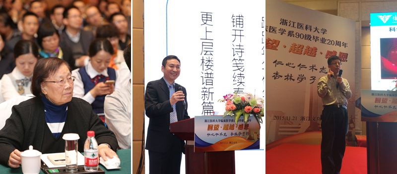 李晓明代表学院对校友们的相聚表示诚挚祝贺,他说,此次同学会选址年办老师张新跃目前的工作地义乌,充分表达了校友与浙医紧系着一段剪不断的母校情缘、师生情谊。他从学校当前的最新发展战略为切入点,为校友们全面介绍了学院的发展情况,并期待校友常回母校看看。