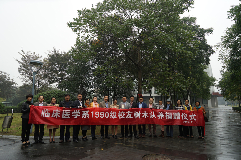 值此毕业20周年之际,90级校友在紫金港校区认养了一棵无患子树,并以“仁心仁术志,杏林学子情”为主题,寄托学子们对母校的深切眷念。在附属第四医院,校友们也同时栽下一棵丹桂以祝福恩师:“难却深长志笃情,忘年更盼绿草茵”。