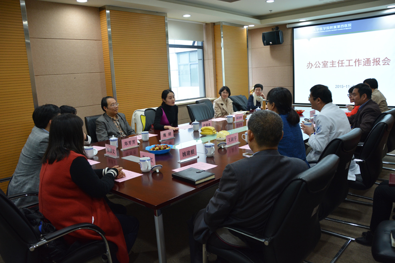 11月20日下午,银河线路检测中心及各附属医院党政办主任工作通报会在附属第四医院召开。