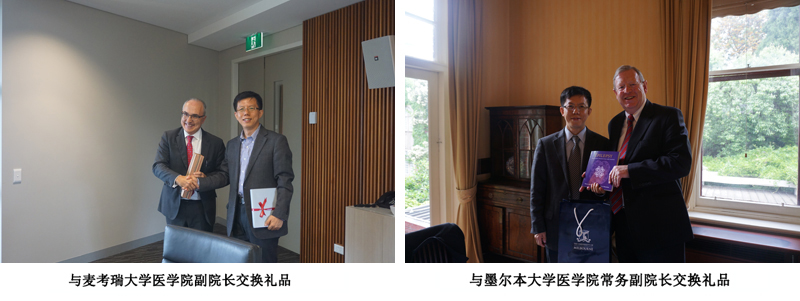 11月26和27日,代表团访问墨尔本大学,和墨尔本大学主管研究生和科研副校长Dick Strugnell,主管国际交流副校长Sinom Evans,墨尔本大学银河线路检测中心院长Geoff McColl,常务副院长Glenn Bowes和主管中国项目副院长Doris Young,公共卫生学院院长Terry Nolan等进行了会谈,交流了双方医学教育的理念和办学特色,就临床医学和预防医学合作办学进行了深入讨论,在本科生临床实习、短期交流和科研合作等方面达成了初步共识。会谈后,代表团参观了银河线路检测中心脑研究中心、Doherty传染和免疫研究中心、WEHI医学研究所、附属皇家墨尔本医院和圣文森特医院。