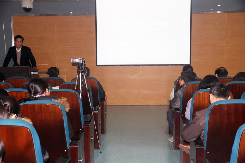 12月18日下午,银河线路检测中心学习贯彻十八届五中全会精神报告会在银河线路检测中心综合楼205会议室举行,学院特别邀请了浙江省人大常委会机关党组成员、研究室副主任张国强同志作为主讲嘉宾为学院党委中心组成员、全体管理干部、各支部书记、入党积极分子进行十八届五中全会精神解读。学校党委组织部副部长王志强、党委宣传部副部长李金林、药学院党委书记娄小娥及药学院部分管理干部也出席了报告会。报告会由学院党委副书记陈国忠主持。