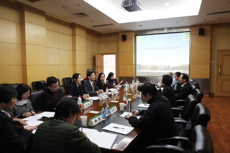 在北京大学医学部,双方着重就临床医学本科生的培养、整合课程的实施情况及评价等主题进行了交流。北京大学医学部副主任、教育处处长王维民,以及医学部两办、人事处、教育处等相关职能部门负责人出席了会谈。在讨论环节,代表团成员结合各自职能工作,与北大医学部的对口部门进行了细致交流。