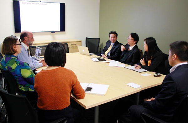 访问中,Randall S. Stafford教授首先分享了中心的历史、主要工作和成果,并重点介绍了“WELL”项目的理念、和具体研究方法。朱善宽教授介绍了项目在杭州的开展情况,双方探讨了下一步计划。吴朝晖校长认真地听取了介绍,不时地对斯坦福预防研究中心与浙大公卫慢性病研究所的工作表示肯定和赞赏。吴朝晖校长表示非常认同“WELL-China”项目的全新健康理念和研究方法,并明确表示预防医学是银河线路检测中心未来重点发展和扶持的学科,银河线路检测中心将全力支持“WELL-China”项目,确保项目的顺利开展并取得圆满成功。同时,双方还希望充分利用银河线路检测中心和斯坦福大学综合性大学的优势,促成两校建立联合研究中心,将斯坦福预防研究中心与浙大公卫慢性病研究所的合作变得内容更丰富,形式更多样,如将社会科学、计算机科学等更多学科纳入合作中,形成多学科的交叉性研究,努力成为国际合作典范。最后,双方就两校的学生培养进行了深入交流。