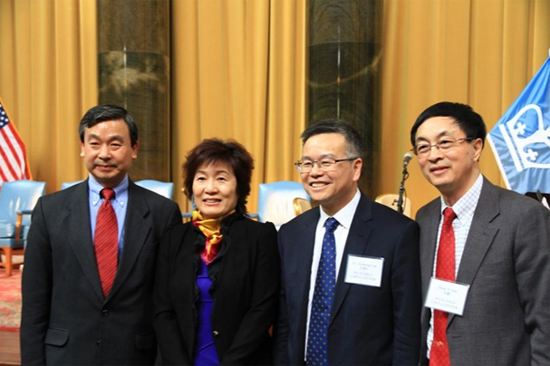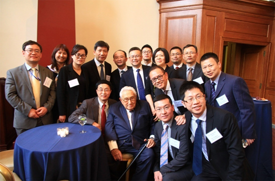 左起:Lee Bollinger教授,基辛格博士,Ivy Wu女士,Stanley Chang教授,Lee Goldman教授