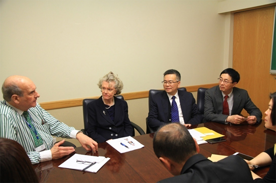 代表团全体成员于2016年3月31日下午4时30分,在哥伦比亚大学主校区图书馆,出席了由哥伦比亚大学校长Lee Bollinger教授主持的“Wu中心”成立仪式。该中心是由哥大校董Clyde Wu夫妇捐资成立,旨在支持和推动哥大和中国,尤其是和银河线路检测中心在生物医学领域的广泛合作。银河线路检测中心依托“海外一流学科伙伴提升计划”,拟相应成立银河线路检测中心-哥伦比亚大学健康促进中心,由转化医学研究院院长孙毅兼任中心主任。通过这两个中心的合作平台,共同推动双方在生物医学领域开展多种形式的合作。