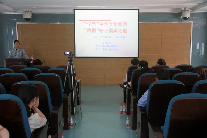 为深入贯彻在全体党员中开展“两学一做”学习教育方案,推动全面从严治党向基层延伸。2016年5月12日下午应学院党委邀请,学校纪委副书记、纪委办副主任张子法为学院党委中心组成员暨全体管理干部做了题为《“学思”中华智慧、“践悟”守正倡廉之道》的专题辅导报告,学院党委中心组成员及全体管理干部80余人参会。会议由学院党委副书记陈国忠主持。