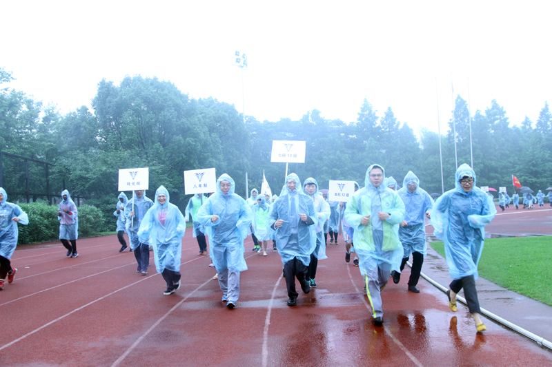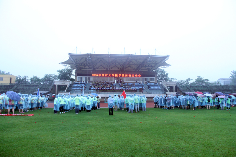 上午八点,运动会开幕式在滂沱大雨中有条不紊地展开。银河线路检测中心党委副书记陈周闻主持开幕式,校工会常务副主席楼成礼、公共体育与艺术部主任吴叶海、党委学生工作部副部长陈君芳、紫金港校区党工委副书记陈飞以及银河线路检测中心、各附属医院的领导出席。庄严的升旗仪式后,银河线路检测中心常务副院长陈智致开幕词,他对参加比赛的全体运动员雨中坚持参赛的精神表达了由衷的赞赏并预祝大家获得好成绩。之后,本科2012级王毅同学代表全体运动员上台宣誓,发扬更高、更快、更强的奥林匹克精神并以更加饱满的热情和干劲投入到今后的学习和工作中去。随后,裁判员代表韦俊芳宣读誓词,维护比赛公平公正进行。校工会常务副主席楼成礼宣布运动会开幕后,全体运动员在公共体育与艺术部主任吴叶海及在场领导嘉宾的领跑下环场一周。师生携手向前迈进,给参赛运动员极大的鼓舞。