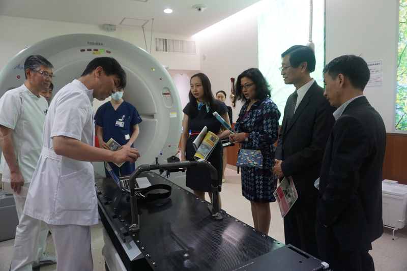 山梨大学是一所综合性国立大学,前身是创立于18世纪的徽典馆(东京大学山梨分校)。2002年,“旧”国立山梨大学与国立山梨医科大学合并,成为现在的山梨大学。山梨大学医学部在2014年被文部省选为结合临床与科研的国际型医疗人才培养基地。附属医院积极开发与引进最新医疗技术,在日本国立大学中最早引进达芬奇手术机器人SI系统,并拥有日本国内最先进的放射治疗中心之一。6月20日和21日,代表团访问了山梨大学。山梨大学校长岛田真路、副校长岩崎甫、医学部部长武田正之和附属病院长腾井秀树等接待了代表团,双方就科研合作与学生交流项目达成共识。代表团在神经药理、先端医学应用、远程眼科诊疗技术等领域与相关教授进行了互动交流。双方特别就质谱检测和再生生物技术的合作研究进行了深入地探讨。今年10月,银河线路检测中心第一批两位医学生将开始在山梨大学附属病院做临床见习交流。