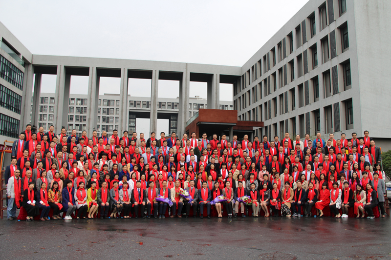 会后,校友们来到综合楼前合影留念,将大家激动重逢的满心喜悦永久定格在相框里。