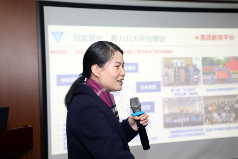陈周闻以“守正创新,聚焦全人教育,培育卓越人才”为主题,从学生思政五大平台建设为切入点,重点强调德育共同体建设的重要性。她表示,学生思政工作要围绕学生培养目标,讲政治、搭平台、重凝练,在深度联动、交流学习中推动学生思政工作更上一层楼。