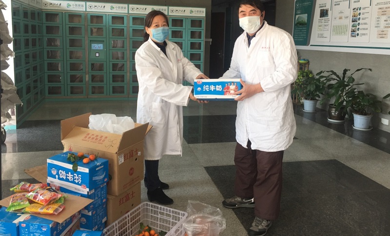 在这场抗击疫情的阻击战中,中心的党员们积极响应习近平总书记的号召,“牢记宗旨,勇挑重担”。坚持做好公共区域每日消杀,全力投身工作,不计得失。同时,党支部发动党员同志们筹集资金,为奋战在一线的员工们送去水果、牛奶和方便面等物资和慰问。