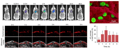 图5 工程化微藻的肿瘤靶向递送和对瘤内乏氧的改善