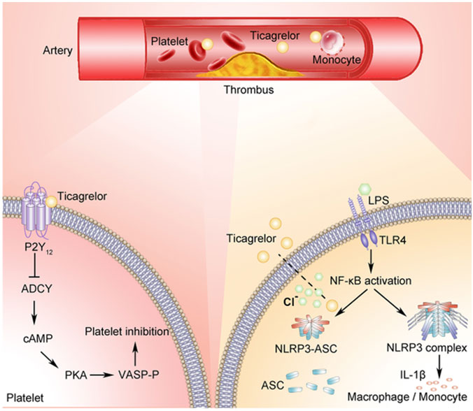夏大静/吴一华研究团队发现抗血小板药物替格瑞洛具有抑制NLRP3炎症小体的新功能