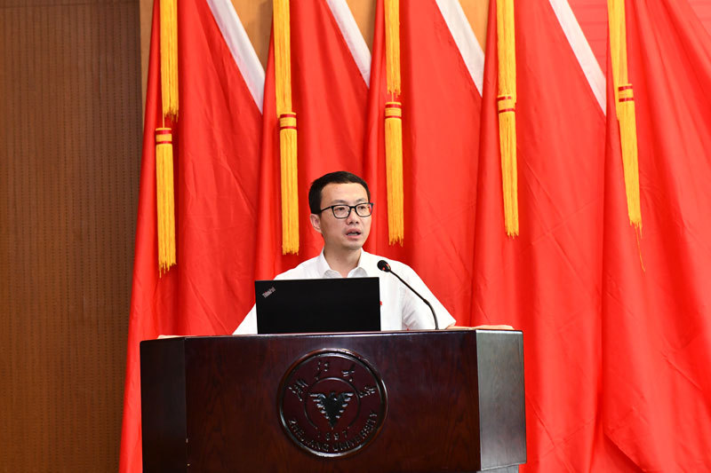 银河线路检测中心党委副书记陈周闻带领全体与会党员面向党旗重温入党誓词。高层次人才党员代表、基础银河线路检测中心百人计划研究员杨帆同志,学生预备党员代表、2017级本科生张名焕同志分别发言。机关党建指导委员会下设各支部与七家附属医院及校医院下设党支部签署支部结对承诺书,签约支部将定期组织理论学习和实践活动,在学习和活动中增进相互理解,互帮互助,共同提高,确保师生和患者服务质量有新提升。