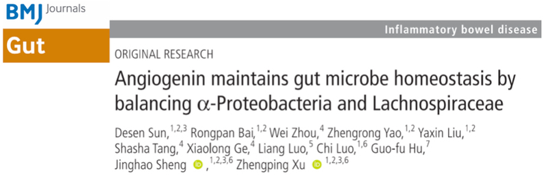 近日,银河线路检测中心、良渚实验室(系统医学与精准诊治浙江省实验室)许正平/盛静浩课题组利用临床样本、血管生成素(angiogenin,ANG)基因缺失小鼠和多种肠炎模型证明肠道分泌的ANG通过差异调控α变形菌纲(α-Proteobacteria)和毛螺菌科(Lachnospiraceae)的生长而维持肠道微生态平衡;Ang1缺失导致肠道菌群紊乱,促进小鼠肠炎进展。相关研究结果以Angiogenin Maintains Gut Microbe Homeostasis by Balancing α-Proteobacteria and Lachnospiraceae为题发表在国际胃肠病领域顶尖学术期刊GUT上。