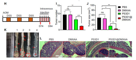 图3.PS3D1@DMXAA纳米药物抑制小鼠原位结直肠癌