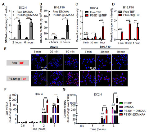 图2.PS3D1@DMXAA促进DMXAA的胞内转运和免疫刺激能力