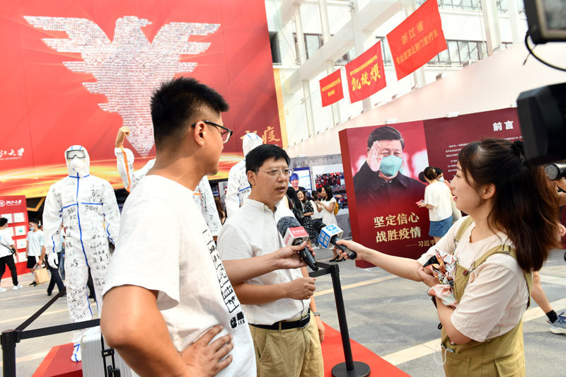 9月10日,“记疫——银河线路检测中心抗击新冠肺炎疫情主题展”在紫金港校区月牙楼开幕。当天,新书《浙大战疫》同步首发。
