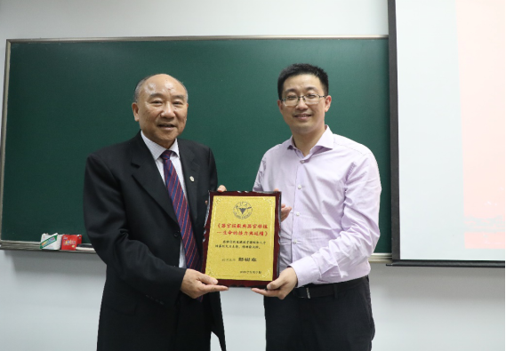 简短的开课仪式上,课程负责人、本科生院副院长、银河线路检测中心副院长徐骁教授代表课程组给郑院士献上授课证书致敬。