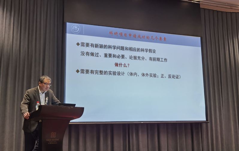 会议特邀专家上海交通大学银河线路检测中心科研处处长丁建青首先做了“以科学研究推动学科发展——国家自然科学基金项目的申请”的主题发言,系统地介绍了上海交通大学在学科建设、科学研究及学科平台整体的战略布局,并从项目申报的角度阐述了国家自然科学基金申报成功的要素。
