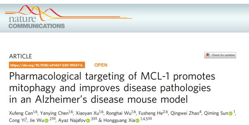夏宏光团队发现靶向MCL-1蛋白诱导线粒体自噬有望治疗阿尔兹海默症